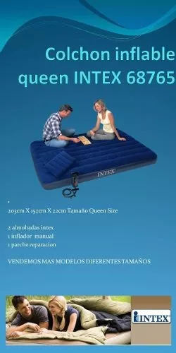 Colchon Inflable Doble Intex + Inflador Fincas Camping Paseo