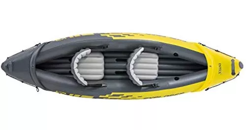 El kayak Intex Explorer K2 es deportivo y divertido con un diseño aerodinámico para remar fácilmente. El color amarillo brillante y los gráficos deportivos hacen que el kayak sea muy visible en el agua. Ideal para experimentar lagos y ríos templados con un amigo, este kayak de la serie Sports es perfecto para dos adultos. Ligero y compacto, este kayak es muy fácil de montar y te permite disfrutar de la diversión del kayak dondequiera que vayas. Hecho con una construcción de vinilo resistente, este robusto kayak tiene un piso inflable con vigas en I para mayor comodidad y rigidez. Un skeg extraíble proporciona estabilidad direccional, mientras que dos ajustables se inflan