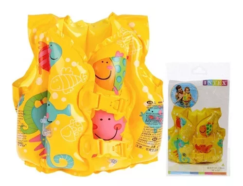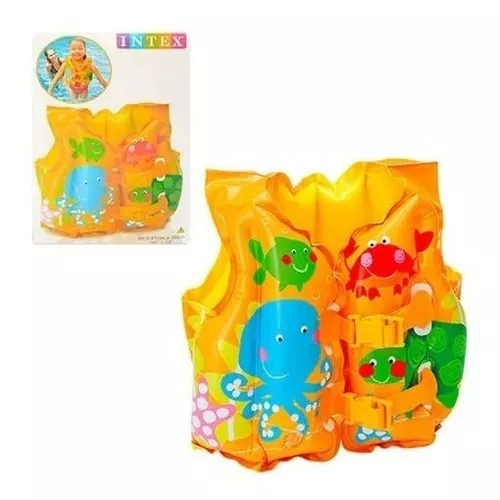 lotador chaleco en diseño de peces divertido es esencial para que el niño o niña se divierta en la piscina o el mar de forma segura. Producido en vinilo pre-probado es muy resistente y tiene dos tiras ajustables de fácil manejo en la parte delantera. Se recomienda uso para niños de 2 a 4 años.