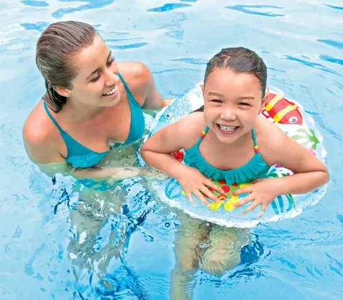 Flotador para niños con diseño de animalitos marinos. Inflable en polivinilo de alta resistencia de la marca Intex.