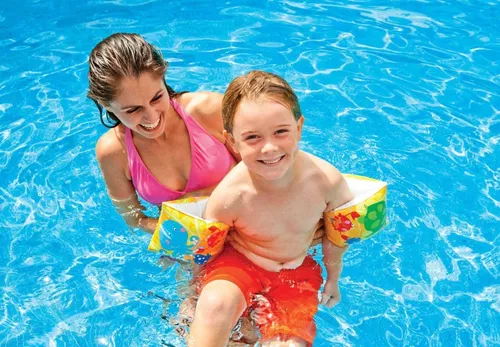 Inicia a los pequeños en el aprendizaje de la natación, ayuda a darle confianza y seguridad a los chicos en el agua con el flotador de manga para brazos. Muy práctico de usar y fácil de transportar a todos lados.