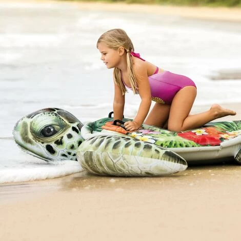 Increíble tortuga hinchable INTEX. Gracias a su impresión con diseño fotorrealista ¡Parece de verdad! Tiene una medida de 191x170x38 cm, esta pensada para el uso de 2 personas y soporta un peso máximo de 80 kg. Además, incorpora dos asas de sujeción para una mayor estabilidad y seguridad. Está recomendada a partir de3 años. Este verano todos querrán tener esta espectacular colchoneta.